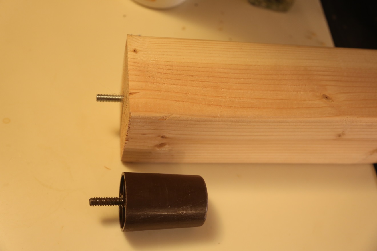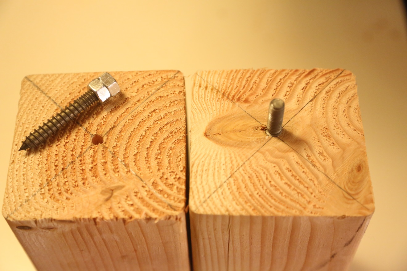 in the end of each 4x4 to accept the wood screw end of the hanger bolt. It takes a drill press to make sure the hole