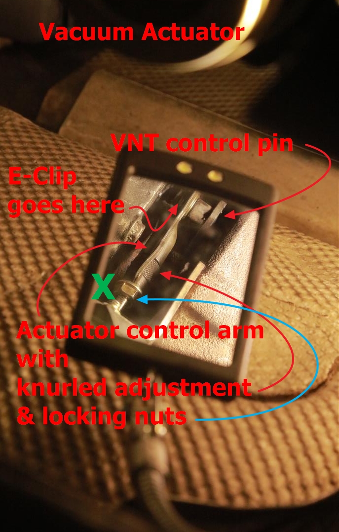 I won't address this (didn't have the problem), other than to say: if you pull vacuum on the actuator and it doesn't move, likely the VNT is frozen.