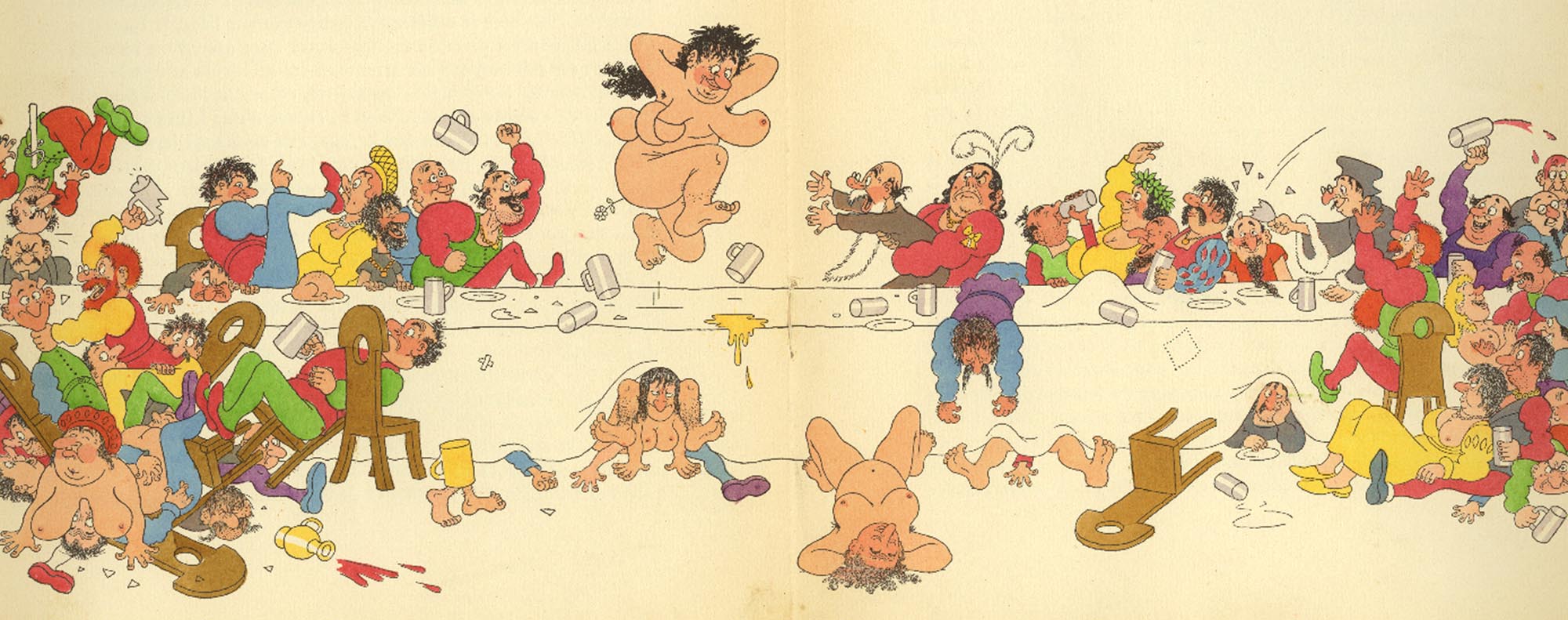 Dubout was named after a particularly wild French artist. We had a book illustrated by him of Eramus' L'Eloge de la Folie with the most amazing pictures. Here's one of a wild medieval, (ahem) orgy. The book appears to be about war and youth and age and battle of the sexes; for those worried about political correctness, both sexes get skewered equally, to say nothing of the tomfoolery of the oldest sport.