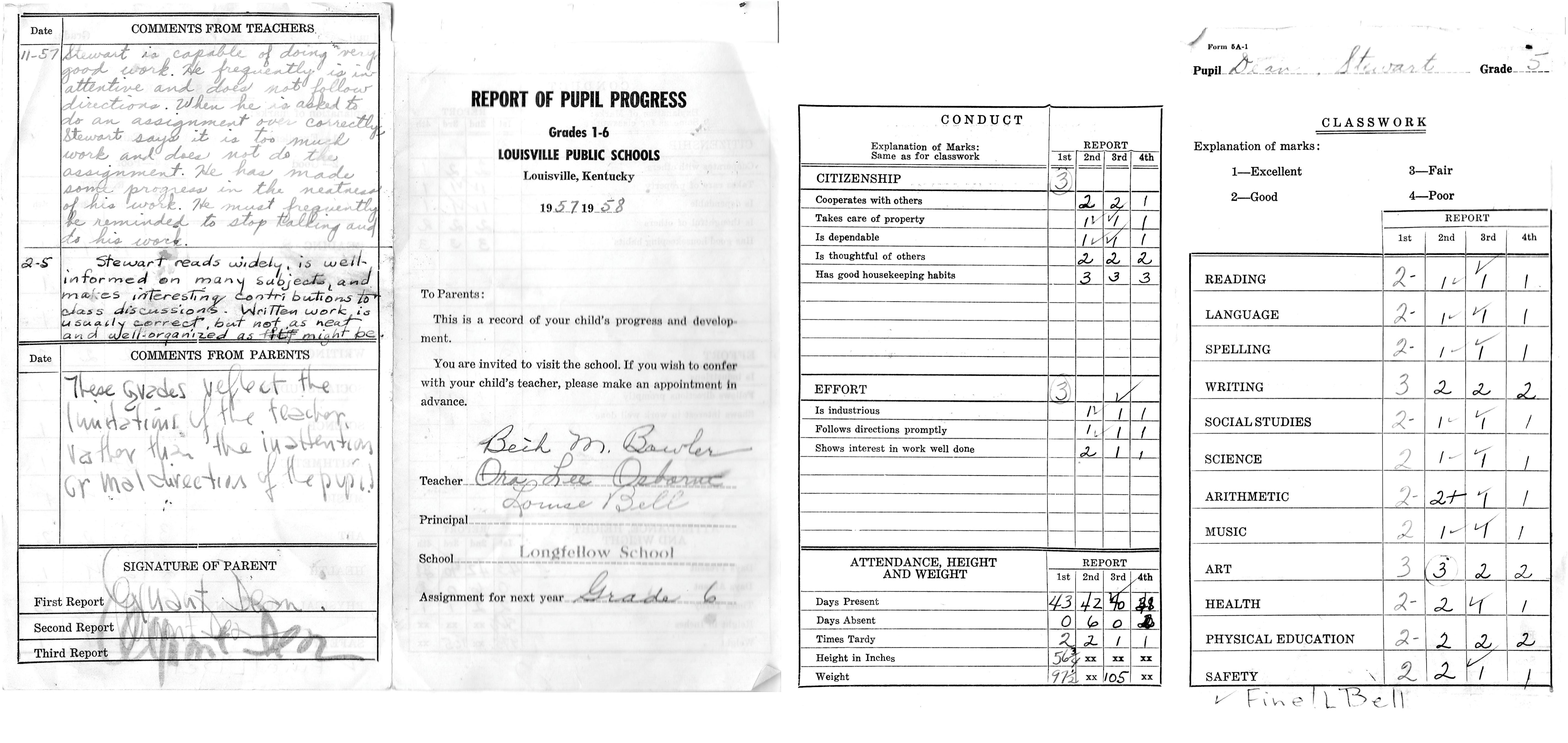 is my 5th grade report card; my father's comment: These grades