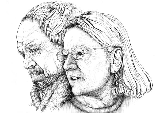 Here's two images of the way I remember my parents: thoughtful, heartfelt. engaged. In my mother's picture, at the bottom left, you can see the feeder, a metal tray with ball bearing supports that held her arms and allowed her some agency.